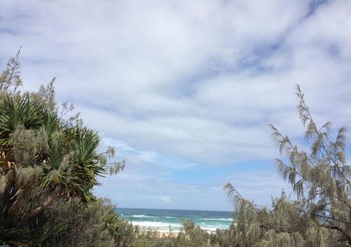 Tags drauf ging es weiter nach Rainbow Beach, eine der beiden Überfahrtsmöglichkeit nach Fraser Island. Mal wieder etwas spät dran, buchten wir eine Tour mit Bus nach Fraser Island, die gleich am nächsten Tag losging und suchten derweil eine Unterkunft für die nächsten beiden Tage. In einer kleinen Ferienanlage buchten wir uns eine kleine Wohnung mit eigener Küche, sodass wir abends dort kochten und den Abend mit einem Glas Wein ausklingen ließen. Am nächsten Tag warteten wir dann vor der Ferienanlage auf den Bus, der uns nach Fraser Island befördern sollte. Voller Vorfreude nach dem bereits erlebten auf den Whitsundays warteten wir auf den Bus. Als dieser kam, staunten wir nicht schlecht, da es kein normaler Bus war, sondern eher ein umgebauter LKW. Nach kurzer Fahrt war uns auch bewusst, wieso. Es ging auf normalen Teerstraßen los bis wir nach kurzer Fahrt mit einer Fähre übersetzten. Auf Fraser Island angekommen, wunderten wir uns erst mal wie wir hier nun weiterkommen sollten, denn wir sahen weit und breit keine Straßen. Die gibts dort auch nicht! Man fährt also einfach am Strand entlang, wohlgemerkt mit einem Bus… Irgendwie seltsam, aber auch spannend. Uns kamen immer mal wieder Pick-ups oder andere Offroadfahrzeuge auf dem offiziellen Highway (75 Mile Beach) entgegen und der Busfahrer erzählte uns einiges über die 1.840 Quadratkilometer große Insel. Beispielsweise nennen die Aborigines Fraser Island K’gari, was übersetzt Paradies bedeutet. Damit haben sie auch nicht ganz unrecht, sodass die Insel auch seit 1992 zum UNESCO-Weltnaturerbe gehört.