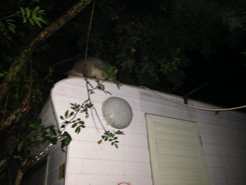 Bereits kurz nach Einbruch der Dunkelheit stellten wir jedoch fest, dass wir quasi noch einen Mitbewohner hatten. Auf dem Baum neben unserem Trailer und wohl auch auf dem Dach des Trailers wohnte ein Opossum. Und eben dieses Opossum hatte die größte Freude damit, aus dem Baum auf das Dach des Wohnwagens zu springen. War somit eine etwas unruhige Nacht.