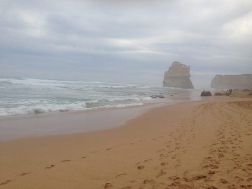 Einen weiteren Zwischenstop machten wir an den Twelve Apostels. Bei den Twelve Apostels handelt es sich um bis zu 60m hohe Felsen, die aus dem Meer ragen. Um dort hinzukommen, parkten wir unser Auto und liefen die kleine Tour hinunter zum Strand. Begleitet wurden wir dabei von gefühlt 3 Millionen Fliegen, die immer wieder versuchten in unseren Gesichtern oder Ohren zu landen. Ziemlich lästig!