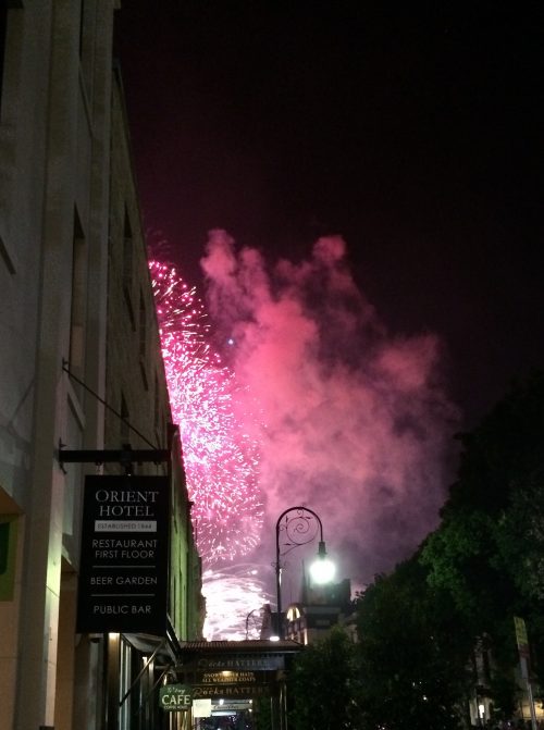 Dies nutzten wir auch gleich und gönnten uns ein Bier in einem dieser Clubs. Wir stellten jedoch fest, dass es sich mehr um ein gemütliches Pub mit Tanzfläche handelte und beschlossen daher erst mal zu bleiben. Kurz vor Mitternacht gingen wir dann vor die Kneipe um das Feuerwerk zu bestaunen. Wir konnten unseren Augen nicht trauen, denn es war rundum voll mit Menschen. Unser Plan etwas weiter zum Ufer zu gehen, um so eine bessere Sicht zu ergattern, hatte sich somit gleich wieder zerschlagen. Das wohl berühmteste Feuerwerk der Welt bekamen wir so leider nur zu Teilen mit.