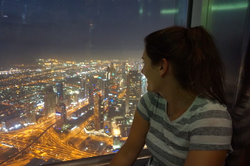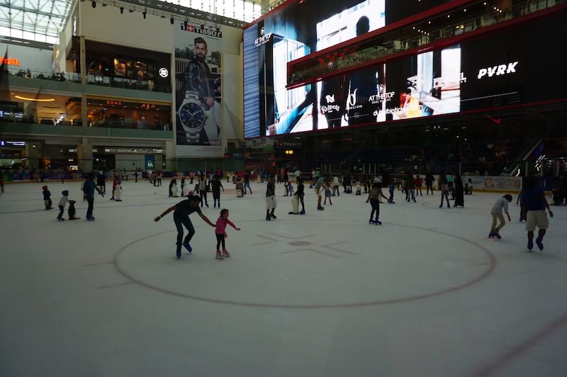 Nach den zum Ende hin doch recht anstrengenden Tagen in Jordanien, machten wir uns auf zum nächsten Ziel – Dubai. Die Stadt empfing uns mit ihren vielen Wolkenkratzern und konstanten fast 50°C. Der Aufenthalt im Freien geriet für uns zwischenzeitlich zur Qual, da wir schlagartig unsere T-Shirts binnen Minuten durchschwitzten, sobald wir das Haus verließen. Aber auch dafür gibt es in Dubai Abhilfe. Zu den meisten Sehenswürdigkeiten gibt es klimatisierte Tunnel, sodass wir nur kurz für die paar Meter zwischen Hotel und U-Bahn ins Freie mussten. Umso surrealer wirkten auf uns die Freizeitmöglichkeiten, wie Indoor Skifahren in der Mall of the Emirates.