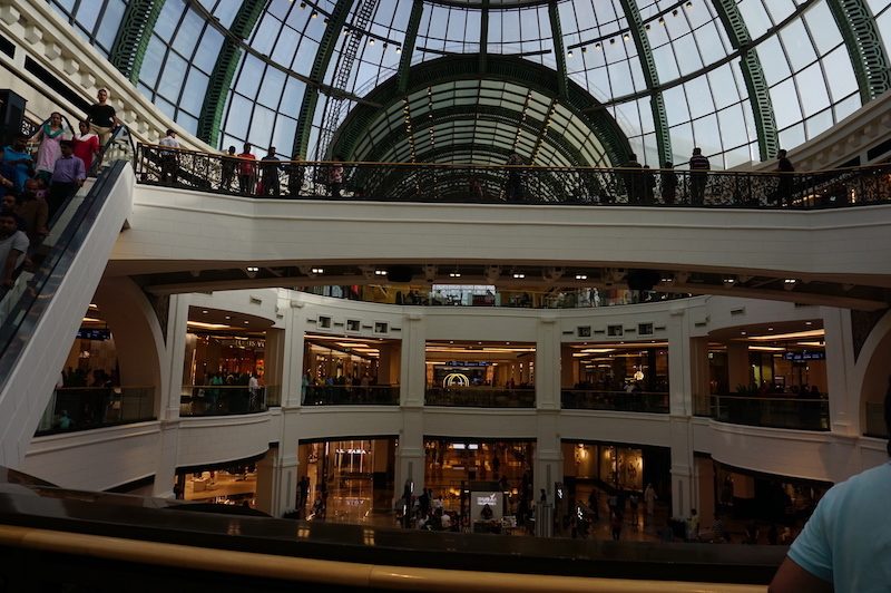 Der nächste Morgen erwartete uns überraschenderweise mit Sonnenschein… 😉 Heute wollten wir ein weiteres Stück Dubaier Extravaganz besuchen. So machten wir uns auf und fuhren mit der Bahn hinaus zur Dubai Marina und zu the Palm. Eigentlich wollten wir auch noch das Burj al Arab besuchen, jedoch war uns das Angebot die Teestunde dort für schlappe 300 Euro zu besuchen ein wenig zu teuer. So fuhren wir, um der Hitze des Tages zu entgehen, zuerst in die Mall of the Emirates. Hier bot sich uns das gleiche Bild wie Tags zuvor, Unmengen an Läden und zu allem Überfluss auch noch die Skihalle Dubais. Jedoch waren uns auch hier die Schnäppchenangebote etwas zu teuer und so beschränkten wir uns das Treiben durch die Große Glasfront zu beobachten. Es stellt sich hier auch die Frage, ob es Sinn macht, solche Dinge in einer Wüste zu tun oder solche Angebote zu unterstützen…