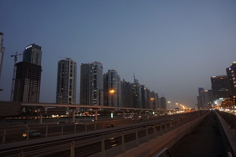 Wir landeten am Abend gegen 23:00 Uhr in Dubai. Schon beim Aussteigen aus dem Flugzeug merkten wir, dass Dubai für den gewöhnlichen Mitteleuropäer eher schwierig ist. Gerade im Sommer. Denn selbst um diese Uhrzeit hatte es noch Temperaturen von weit über 40 Grad. Wir waren daher sehr dankbar nach einer gefühlt ewig dauernden Busfahrt vom Flugzeug aus, das klimatisierte Terminal zu betreten. Dort angekommen durchliefen wir erst einmal das Einreiseprozedere, wobei dies sehr zügig vonstatten ging, da man sich als Deutscher in den Vereinigten Arabischen Emiraten 90 Tage visumfrei aufhalten kann. Im Anschluss holten wir unser Gepäck und machten uns mit einer der letzten U-Bahnen auf in Richtung Debra, dem „alten Dubai“, da wir hier unsere Unterkunft gebucht hatten. Diese lag zum Glück nur einige Meter von der zugehörigen Bahnstation entfernt, da an einen längeren Fußmarsch mit Gepäck auch Nachts um zwölf bei diesen Temperaturen nicht zu denken war. Wir hatten aber auch nichts anderes erwartet.