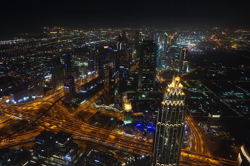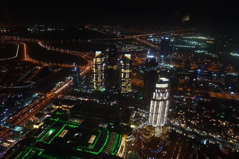 Um halb sieben am Abend ging es dann endlich auf den Turm. Nach der üblichen Sicherheitskontrolle und Greenscreen Fotografen, die einem ihre Bilder aufschwatzen wollten, fuhren wir also mit dem Aufzug in 60 Sekunden auf über 400 m Höhe. Hier befinden sich im 125. und 126. Stockwerk zwei Aussichtsplattformen. Der Ausblick ist sagenhaft und lässt die Weitläufigkeit der Stadt erahnen. Überall sieht man weitere Baustellen und fragt sich zwangsläufig, wohin das alles mal führen wird. Wir genossen den Sonnenuntergang und die über die Stadt einbrechende Nacht. Unter uns sahen wir weit entfernt das Wasserspiel. Am späten Abend fuhren wir wieder hinunter und machten uns auf den Heimweg, da wir nach diesem kurzen Stoppover unsere Sachen packen und uns für unser nächstes Ziel Tokio vorbereiten mussten.