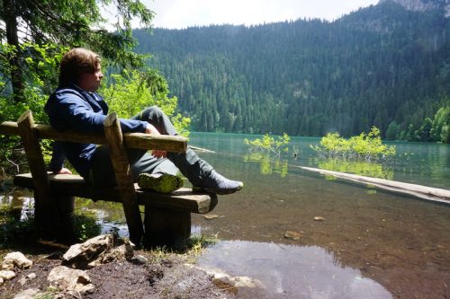 Wir folgten dem Wanderweg durch Wald und über Wiesen für ca. 40 Minuten bevor wir den Schwarzen See erreichten. Zwischendurch konnten wir immer wieder spannende Ausblicke auf den Hauptberg Bobutov Kuck des Durmitor Nationalparks genießen. Den Berg wollten wir im Laufe der nächsten Tage besteigen, sofern sich das Wetter ändern würde.