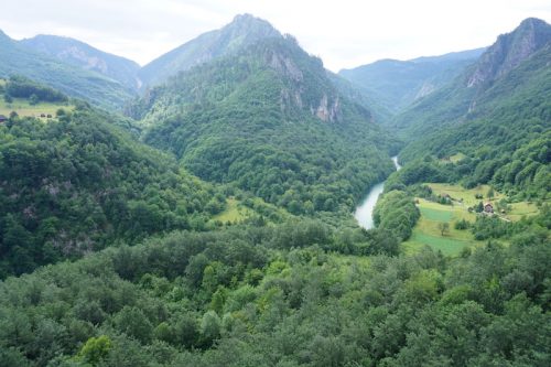 Im Anschluss wollten wir noch ein wenig entlang der Tara in die Schlucht hinein wandern. So fuhren wir ein paar Kilometer tiefer in Tal der Tara bis zu einem Einstiegspunkt für Raftingtouren gelangten. Der uns erklärte Wanderweg war allerdings nicht zu finden, sodass wir den Ausblick in der Schlucht noch ein paar Minuten genossen, bevor wir uns wieder aufmachten und nach Zabljak zurückkehrten.
