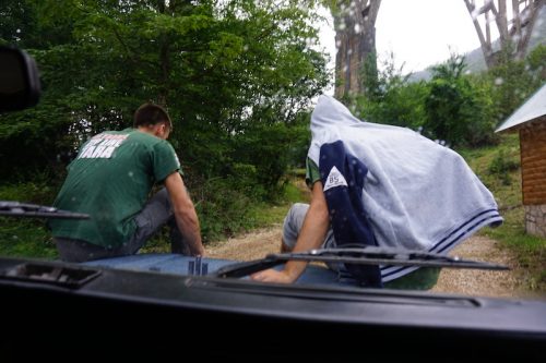 Nass erreichten wir eine kleine Bäckerei und gönnten uns zum Aufwärmen einen Kaffee, bevor wir noch schnell etwas einkauften und anschließend, mal wieder im Regen, zu unserem Campingplatz zurück kehrten. Dort angekommen überzeugten wir zwei französische Mitcamper, die wir am morgen kennengelernt hatten, bei ein paar Bier in gemütlicher, wen auch kalter Runde, uns am nächsten Tag mit ihrem Leihwagen zur Taraschlucht mitzunehmen.