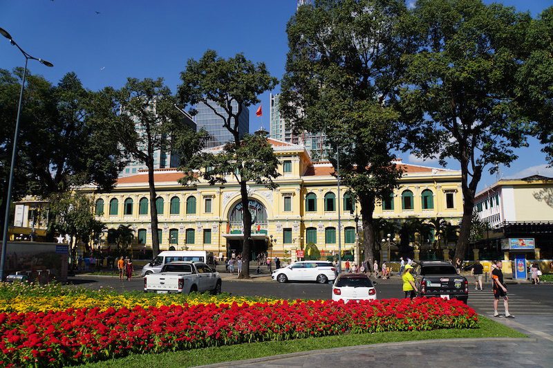 Wir schlenderten weiter und kamen an die Oper, welche dort 1897 vom französischen Architekten Eugene Ferret, selbstverständlich auch im französischen Kolonialstil erbaut wurde. Zwischenzeitlich wurde die Oper als Sitz des Unterhauses Südvietnams genutzt, seit 1975 kann man hier jedoch wieder verschiedene Opern und Theaterstücke sehen.