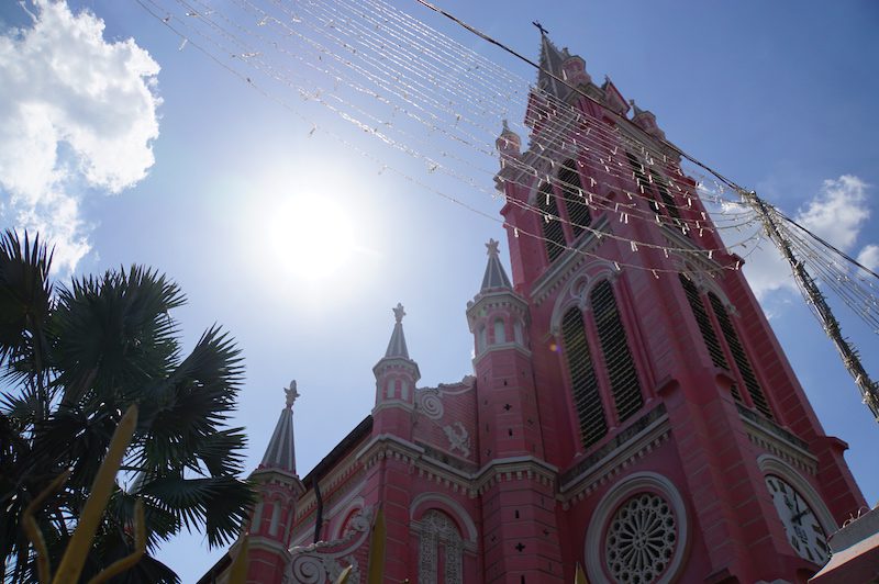 Anschließend kamen wir an einer ganz in pink gestrichenen Kirche, der Tan Dinh Church vorbei. Das etwas an Barbie erinnernde Gebäude war leider für Besucher gesperrt, sodass wir nicht sehen konnten, wie pink die Kirche in ihrem Inneren war.