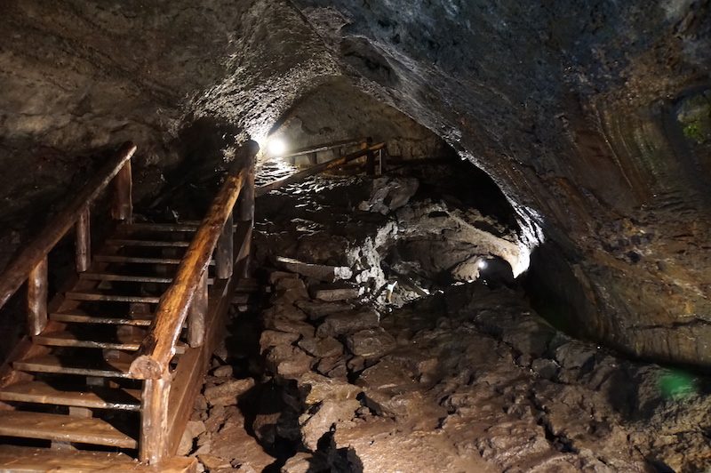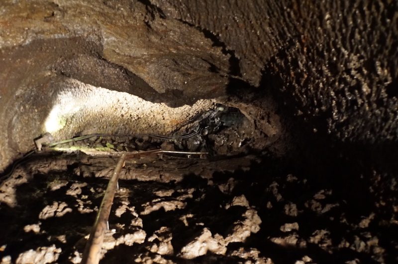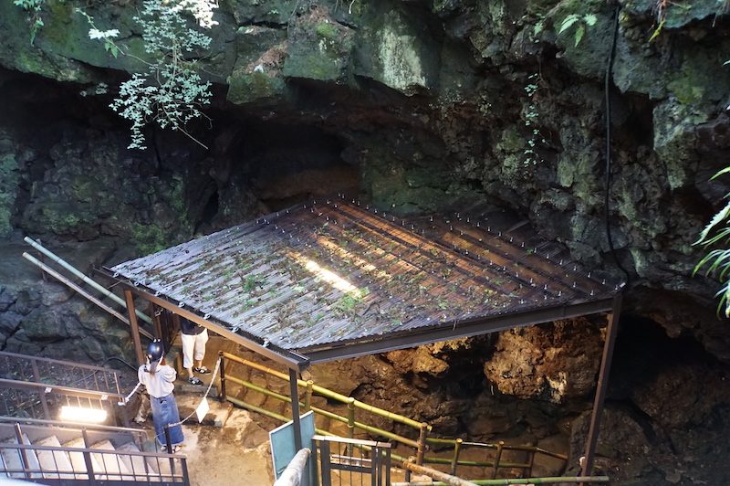 Oben angekommen erwartete uns ein vom Wind noch gepeitschter See und wir konnten bei einer kurzen Pause einen Windsurfer beobachten, der mit atemberaubender Geschwindigkeit den See überquerte. Wir fuhren weiter entlang des Sees bis wir den Eingang des zugehörigen Nationalparks erreichten. Hier beginnt auch der Aokigahara Forest ein wilder, wirtschaftlich aufgrund der Topographie nicht nutzbarer Wald, der wegen der vielen Selbstmorde japanweit eine eher zweifelhafte Berühmtheit erlangte. Wir radelten weiter durch den eigentlich sehr schönen und naturbelassenen Wald bis wir zu einer vulkanischen Höhle kamen und hier für ein paar Yen eine kleine Höhlentour (Fledermäuse inklusive) unternahmen.