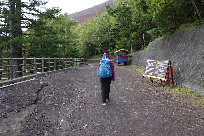 Wir standen also an der Bushaltestelle und stellten besorgt fest, dass der erste Bus nicht kam. Unsere Unruhe wuchs, wie auch die Schlange an Menschen die auf den Bus warteten und als der Bus dann endlich kam, hatten wir sogar noch Plätze im ersten Bus ergattert und fuhren etwa eine Dreiviertelstunde bis wir den Ausgangspunkt der Tour die sog. Fifth Station auf 2.350m erreichten (Details siehe Bericht Tour Fuji).