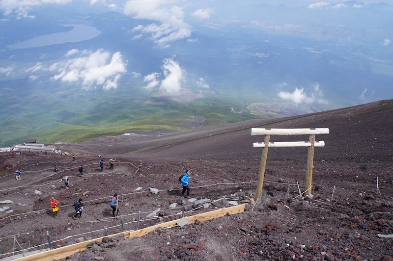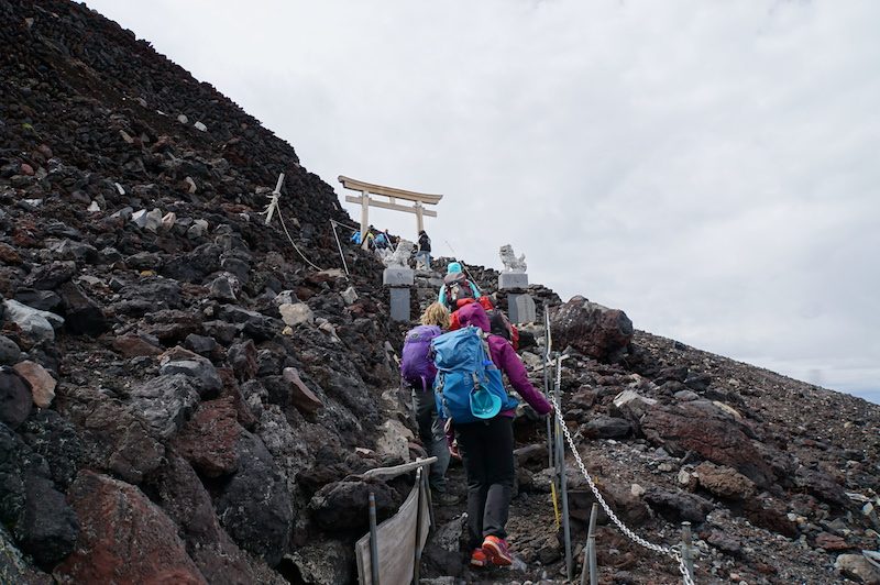 So zogen sich die letzten 150 Höhenmeter nochmals, bevor wir gegen Mittag den Gipfel des Fujis auf 3.778m erreichten.