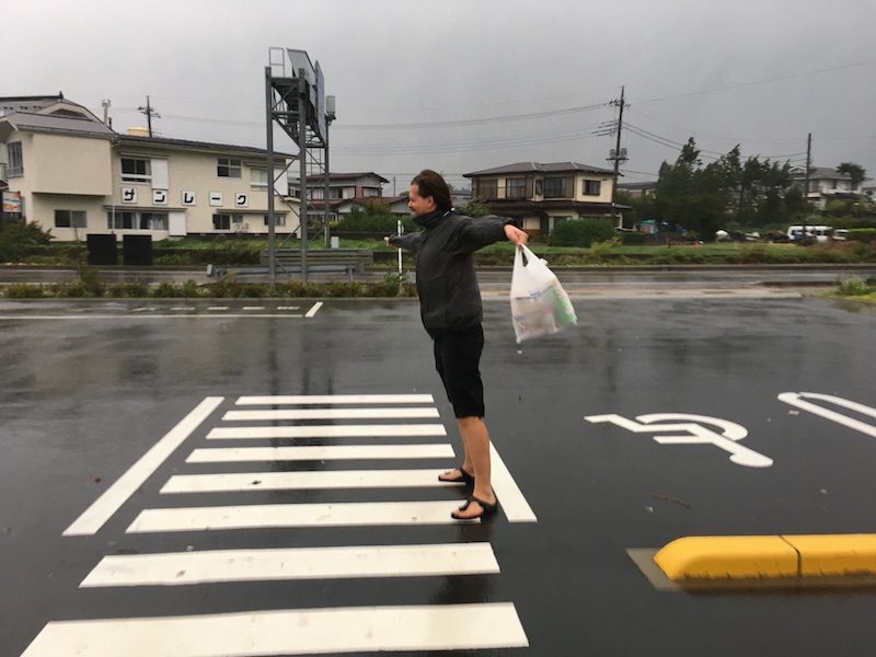 Am späten Nachmittag machten wir uns gezwungenermaßen auf zum nahegelegenen Supermarkt, um uns etwas zum essen zu kaufen. Diese vielleicht hundert Meter führten dazu, dass wir trotz Regenjacken quasi frisch geduscht am Supermarkt ankamen. Der Wind peitschte uns den Regen waagerecht in Gesicht und die Böen erschwerten das Vorwärtskommen doch erheblich. Der Rückweg gestaltete sich dank Rückenwind auch nur ein wenig angenehmer. Wir hatten aber nur die Randausläufer des Sturmes abbekommen, da der Landkontakt des Sturmzentrums in Osaka erfolgte. Zum Glück mussten wir das nicht live miterleben.
