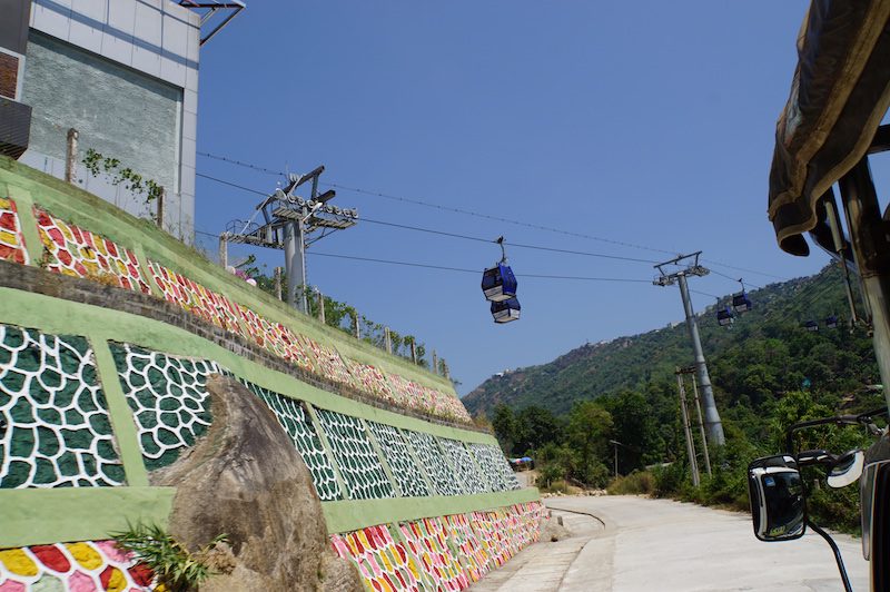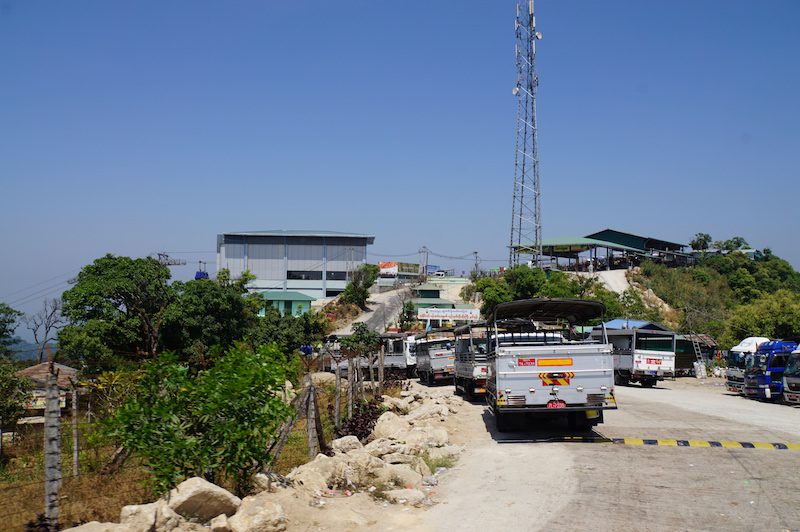 Auf der Fahrt machten wir einen kurzen Stop, an dem wir 2.000 MMK (umgerechnet ca. 1,20 Euro) pro Person für die Fahrt zahlen mussten und einen weiteren Halt an dem uns die Möglichkeit gegeben wurde, in eine Seilbahn umzusteigen und die letzten Höhenmeter damit zurückzulegen. Wir blieben jedoch sitzen.
