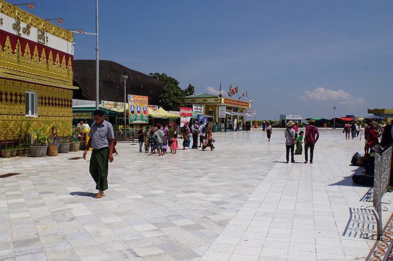Nun konnten wir los, um die Pagode zu sehen. Der Platz um den goldenen Felsen ist riesig und es wimmelte nur so von gläubigen Buddhisten.