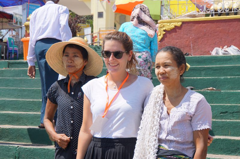 Wir verbrachten eine gute Stunde an und um der Pagode, unterhielten uns mit einem thailändischen Mönch, machten Fotos mit vielen Burmesen, genossen die wunderbare Aussicht und verfolgten das ganze Spektakel um uns herum.