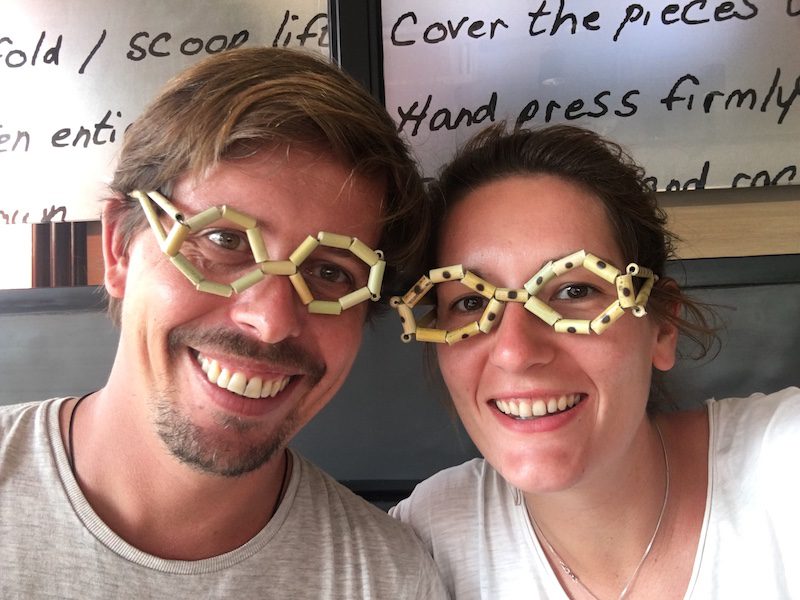 Auf dem Rückweg zum LKW verfolgten uns zwei Kinder und wir waren zuerst der Meinung, dass sie uns etwas aus ihrem Fundus andrehen wollten. Das Mädchen gab uns eine selbstgebastelte Brille in die Hand, der Junge eine Hupe, beides aus Bambus. Wir versuchten dankend abzulehnen, doch die beiden Kinder bestanden darauf, uns dies zu schenken. Wir waren uns sicher, dass die beiden irgendwann noch nach Geld baten, wie wir es aus anderen Ländern, wie Thailand oder Vietnam gewohnt waren, aber es kam kein Wort diesbezüglich. Die Beiden freuten sich einfach westliche Menschen zu sehen und sagten uns tausendmal wie schön wir sind. Wahnsinn, diese Burmesen!