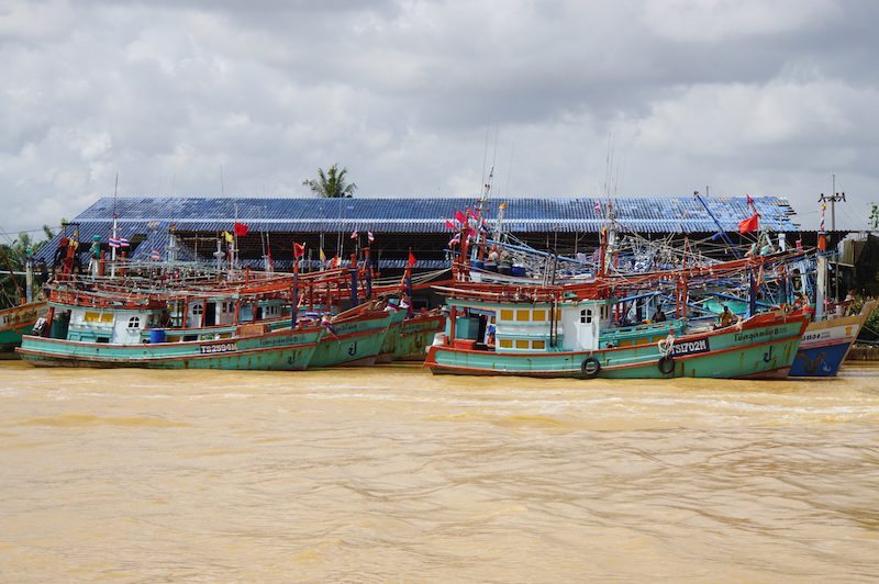 Gegen 11:00 Uhr kam unser Shuttle, das uns vom Hotel in Chumphon abholte. Da wir nicht wussten von wo aus der Bus zur Fähre ging, nahmen wir diesen Service dankend an. Wie sich nach der halbstündigen Fahrt kreuz und quer durch die Stadt aber letztendlich rausstellte, fuhr der Bus am Bahnhof ab. Dieser war definitiv in Laufweite und vermutlich wären wir auch schneller gewesen, aber was soll’s. Wir bekamen unsere Tickets und Aufkleber an einem Schalter und stiegen anschließend in den Bus, der uns zur Anlegestelle der Fähre brachte.