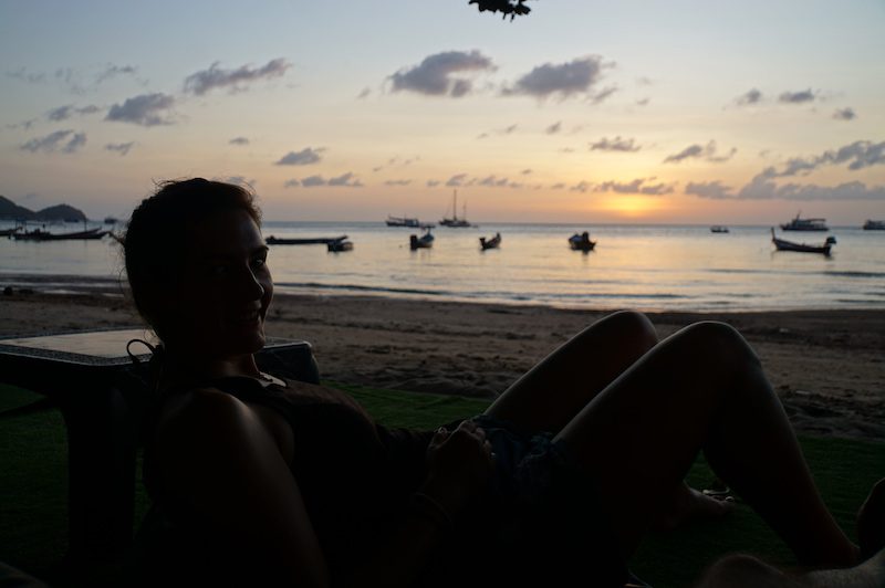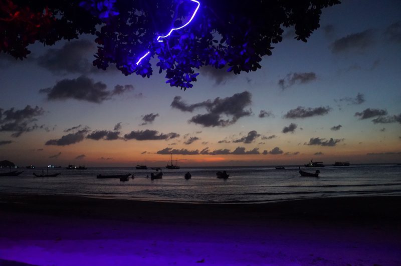 Wir landeten in einer der vielen Bars am Strand und tranken ein Bierchen. Nach einem wunderschönen Sonnenuntergang, entschieden wir uns etwas zu essen zu suchen und fanden einen kleinen Stand mit verschiedenen thailändischen Gerichten. Dort bestellten wir uns alle eine Stärkung und ließen den Abend danach zurück an unseren Bungalows ausklingen.
