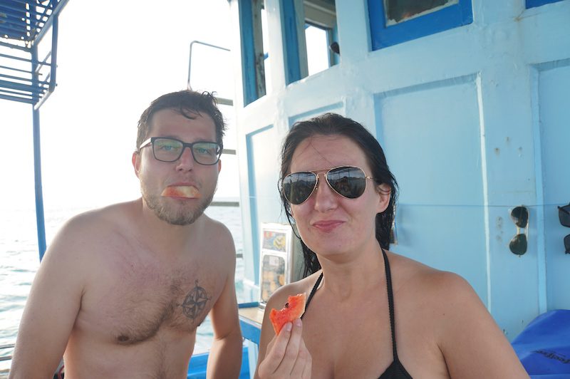 Zurück am Boot stärkten wir uns mit Wassermelone und es ging wieder in Richtung Sairee. An der Tauchschule füllten wir noch unsere Logbücher und liefen im Anschluss zurück zu Unterkunft.