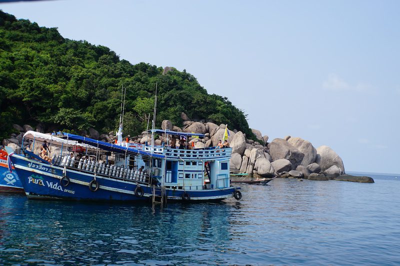 Unseren ersten Tauchgang machten wir, also Dennis, Manu, Max und ich am Chumphon Pinnacle. Die Sicht war wesentlich besser und wir sahen viele Fische, sodass sich der gut 30 minütige Tauchgang sehr kurz anfühlte.