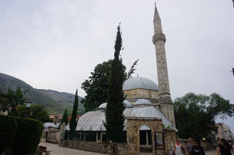Danach ging es schnurstracks in die Innenstadt. Vor der Brücke schlenderten wir durch die kleinen Gässchen und konnten immer wieder einen Blick auf den Fluss erhaschen. Die letzten Meter vor der Brücke bummelten wir uns vorbei an einer kleinen Moschee. Bosnien und Herzegowina ist das einzige Land Europas mit mehrheitlich muslimischer Bevölkerung, sodass wir auf unserem Weg zur Brücke das erste Mal auf unserer Reise den Muezzin rufen hörten.