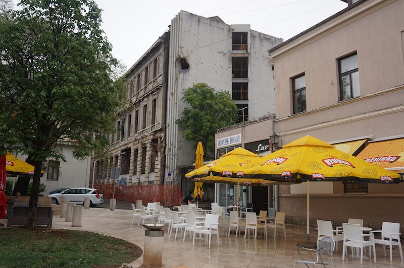 Wir bummelten noch ein wenig durch die angrenzenden Viertel. Erstaunlicherweise entdeckten wir auch über 20 Jahre nach dem Ende des Bosnienkrieges immer noch Kampfspuren in den Fassaden der Häuser und auch noch recht viele Ruinen innerhalb des Stadtzentrum.