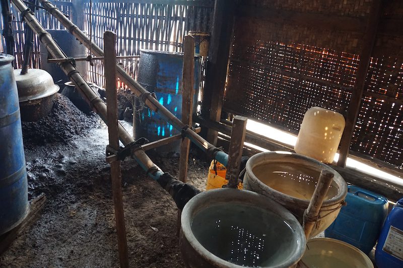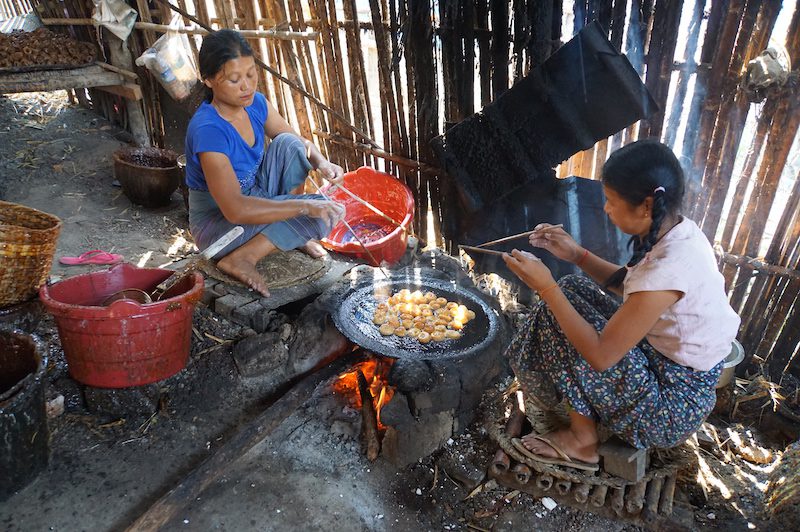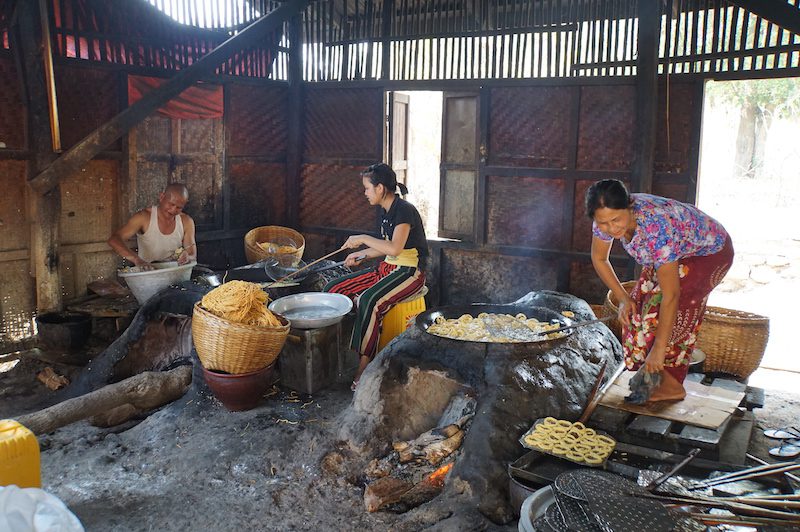 Da in dem kleinen Dorf neben Tofu auch allerhand andere Snack aus Reis und Soja und sogar Reisschnaps hergestellt werden, zeigte uns unser nette Guide auch diese. So bekamen wir nicht nur einen Eindruck über die Herstellung und konnten alles probieren, sondern sahen auch, wie das eigentliche Leben der dort ansässigen Burmesen abläuft. Jeder dieser kleinen Betriebe ist ein Familienbetrieb und es helfen alle zusammen.
