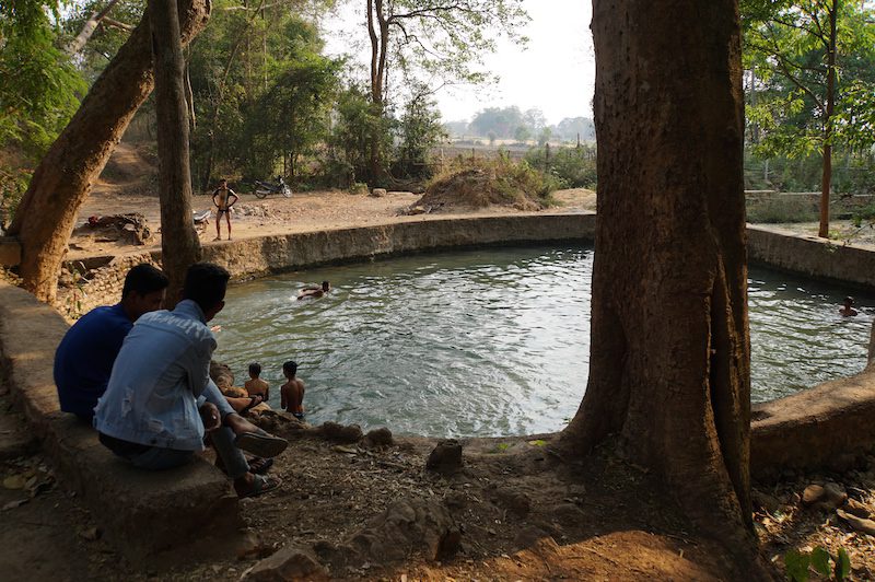 Dort angekommen, stiegen wir wieder auf unsere Fahrräder und fuhren damit zu unserem nächsten Stop, einem kleinen Badetümpel. Aufgrund der wirklich heißen Temperaturen war dies nicht der schlechteste Stop und wir konnten uns zusammen mit einigen Burmesen, die dort badeten oder sich zum Teil auch wuschen (auch mit Shampoo, was für uns ein bisschen seltsam war und wir zudem nicht genau darüber nachdenken wollten, was in dem Wasser alles war…). Wir kühlten uns ab, tranken ein mitgebrachtes Bierchen und lernten dabei Eko kennen. Eko ist ein, mal wieder super netter Burmese, der zusammen mit seinem Cousin Boottouren auf dem Inle See anbietet. Da wir uns alle auf Anhieb mit ihm verstanden, machten wir auch gleich eine Bootstour für den nächsten Tag mit ihm aus. Er bot uns an uns am Hostel abzuholen und uns über den Inle See zu fahren und dort nur die Stopps mitzunehmen, die wir auch sehen wollten. Somit war auch schon klar, was wir am morgigen Tag machen sollten.