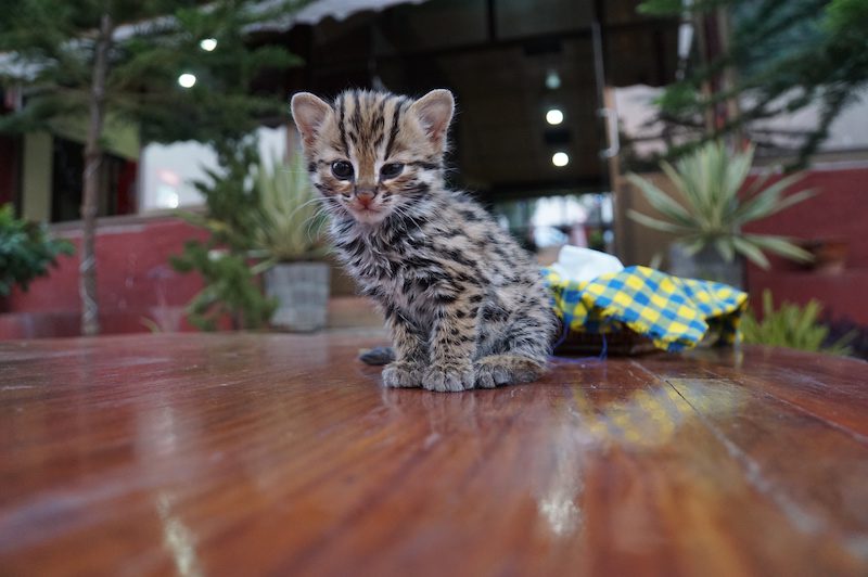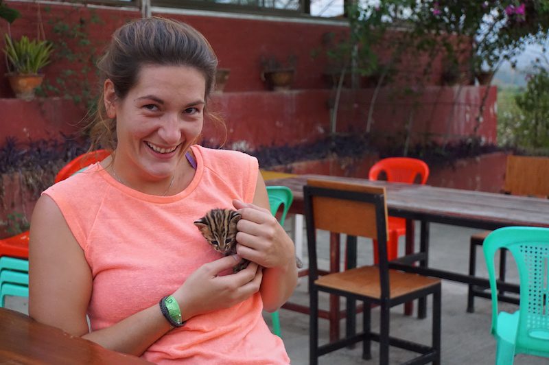 Nach etwa zwei Stunden ging unsere Fahrradtour weiter und wir fuhren zu unserem letzten Tagesstop, einer Winzerei. Wir waren etwas perplex, dass es so etwas auch in Myanmar gibt, denn wir haben in Deutschland oder sonst wo auf der Welt noch nie Wein aus Myanmar gesehen. Wie wir erfuhren ist die Winzerei Red Mountain Estate Vineyards & Winery noch sehr jung, da mit dem Anbau der Trauben erst im Jahr 2002 begonnen wurde. Wir probierten den Wein selbstverständlich, doch wirklich geschmeckt hat er uns nicht. Vielleicht ist dies auch ein Grund, warum man burmesischen Wein in unseren Region (noch) nicht kennt. Trotzdem stellte sich der Besuch der Winzerei als heimliches Highlight heraus, da uns der Betreiber erzählte, dass sie vor kurzem einen Babypuma im Wald gefunden und geretten haben. Wir wollten das kleine Wesen selbstverständlich sehen und es wurde uns in einem kleinen Körbchen gebracht. Wir staunten nicht schlecht, waren uns aber alle einig, dass es sich hierbei nicht um einen Puma (es gibt keine Pumas in Asien) handelt, sondern eher um einen Babyleopard. Was es wirklich war, wissen wir mit Sicherheit aber bis heute nicht. Verliebt haben wir uns aber trotzdem auf Anhieb!
