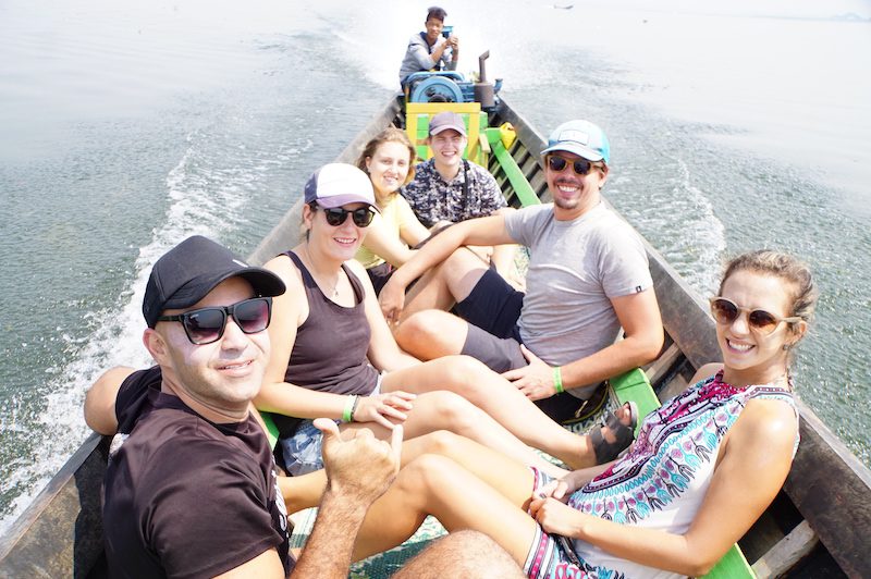 Von Kinpun ging es für uns weiter an den Inle See und wir verbrachten vier tolle Tage in dieser wunderschönen Kulisse. Wir unternahmen neben einer Fahrradtour bei der wir das leckerste Tofu aßen, burmesischen Wein probierten und (vermutlich) einen Babyleoparden im Arm hatten auch einen Bootstrip, bei dem wir verschiedenste Manufakturen auf dem See besuchten, in das Haus unseres Bootfahrers eingeladen wurden und zum Sonnenuntergang in den See sprangen.