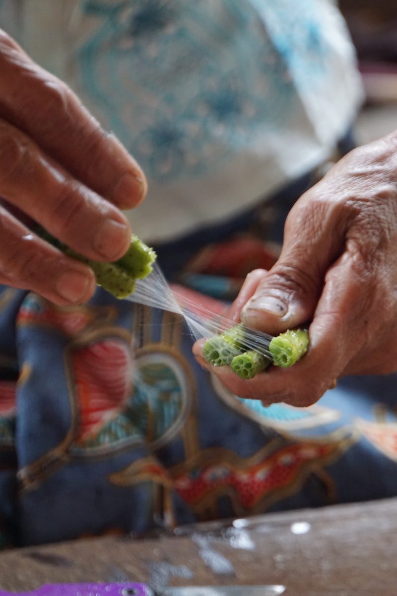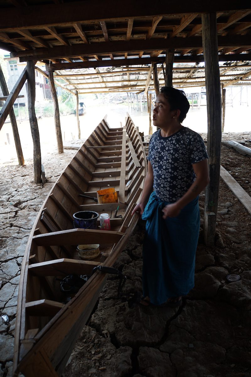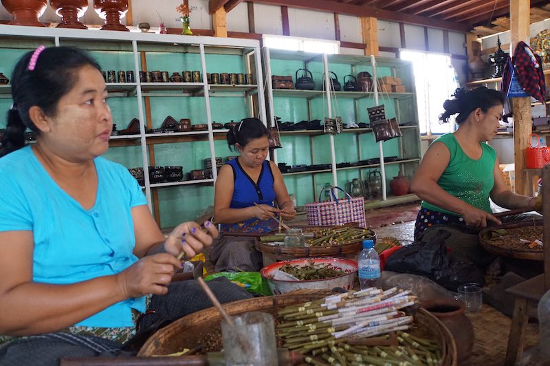 Wir besprachen kurz, was wir sehen wollten und machten uns auf den Weg zu den verschiedenen Fabriken, die auf dem Inle See in schwimmenden Häusern untergebracht sind. So besuchten wir neben einer Silbermanufaktur, einem Bootsbauer, einer Zigarillomanufaktur auch eine Manufaktur in der Lotusseide hergestellt und verarbeitet wird.