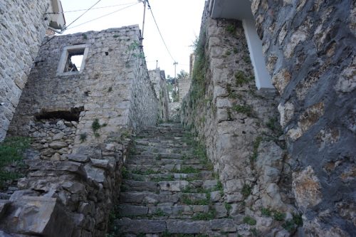Über einige Treppenstufen führte uns der Weg auf die Burg Turina bzw. das was davon noch übrig ist.