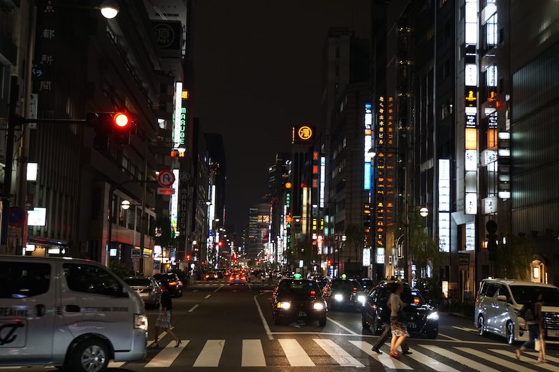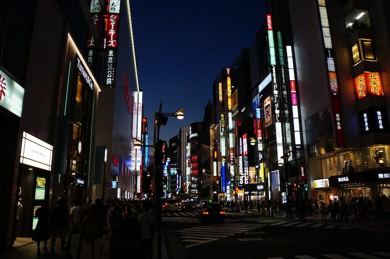 Am Nachmittag liefen wir nach Ginza, dem Shoppingviertel Tokios. Hier reihen sich Flagshipstores aller möglicher Unternehmen und Designer aneinander und wir ließen uns zu einem kleinen Bummel bis spät in den Abend hinreissen.