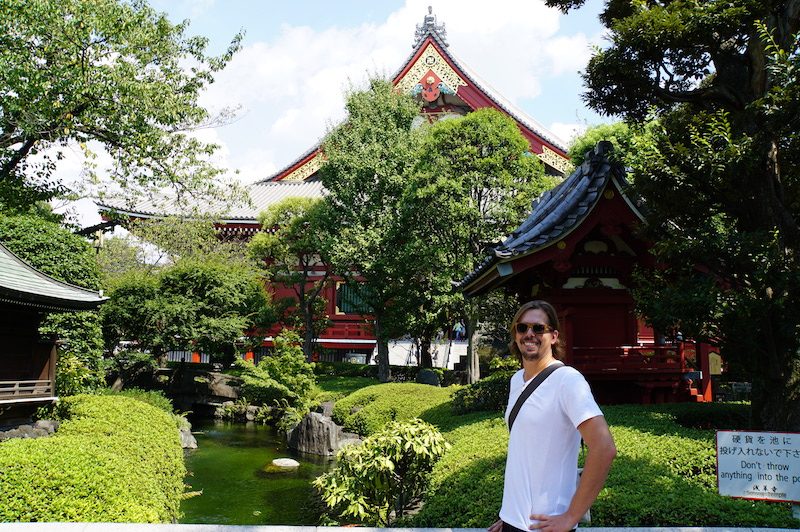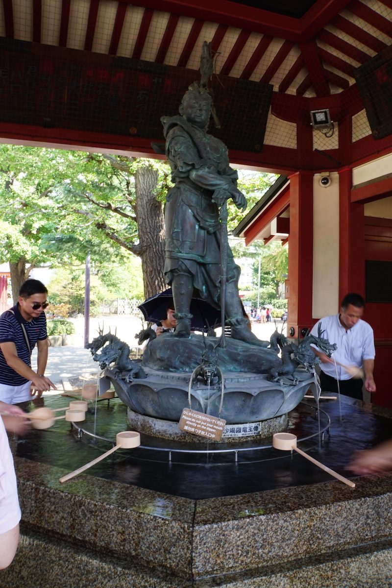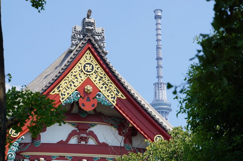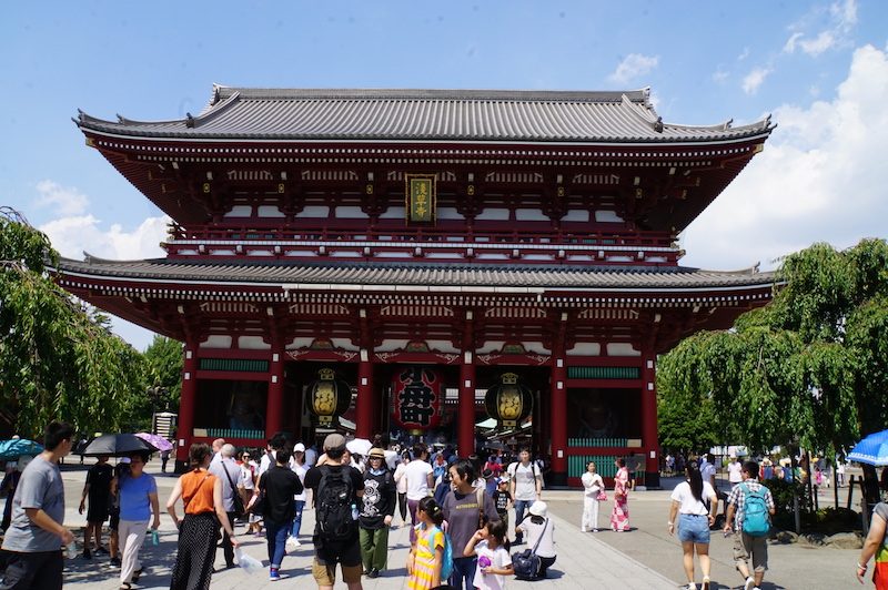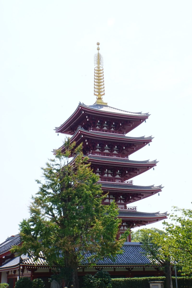 Hinter dem Haupttor lag die fünfstöckige Pagode und daneben der Haupttempel sowie der ebenso bedeutende Asakusa Schrein.