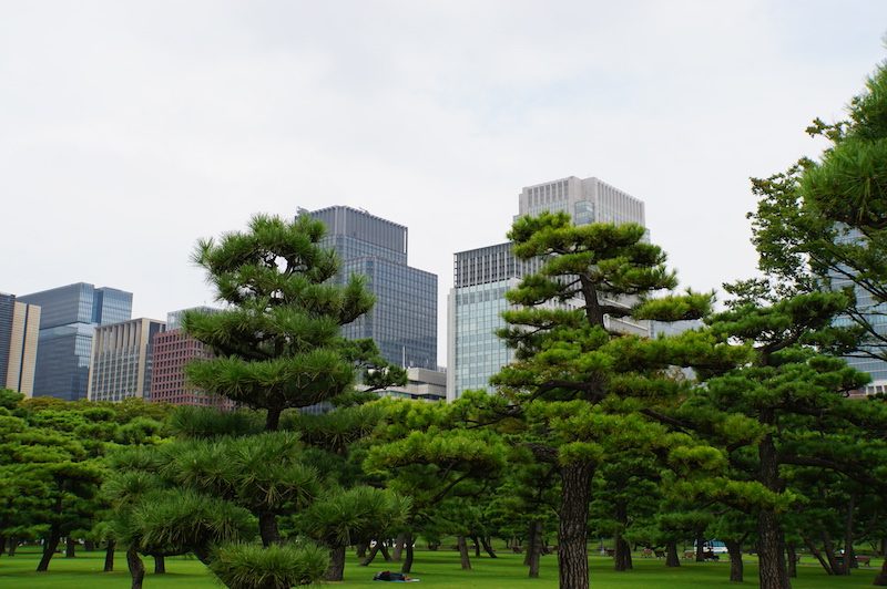 Der nächste Tag stand im Zeichen der japanischen Geschichte und so machten wir uns auf zur Tokyo Station, dem zentralen Bahnhof im Osten der Stadt, um von hier aus zum Tennopalast, dem Sitz des japanischen Kaisers (Tenno) zu kommen. Vorbei an mehreren Wolkenkratzern in der Nähe des Bahnhofes, gelangten wir nach einem kurzen Spaziergang in den weitläufigen Park, der die Anlage umgibt.