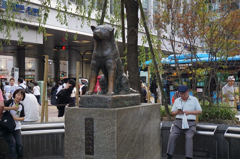 Unser vierter Tag in Tokyo führte uns am Morgen in das moderne und etwas abgedrehte Viertel Shibuya. Rund um die Shibuyakreuzung, die meist frequentierte Kreuzung der Welt, ließen wir die dortigen Menschenmassen beim Überqueren der Straße erst einmal auf uns wirken, bevor wir uns selbst in dieses Menschengetümmel warfen und auch, gefühlt zwanzig Mal die Kreuzung überquerten. Wir besuchten hier auch die Hachiko Statue, ein Gedenkstein für einen japanischen Hund, der selbst nach dem Tod seines Herrchens über Jahre jeden Tag noch zur gleichen Zeit zur Shibuya Station kam, um diesen abzuholen.