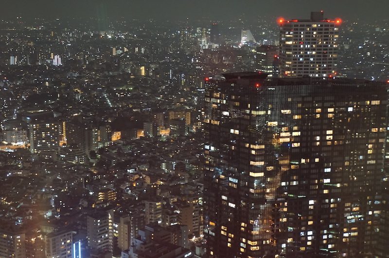 Wir fuhren mit dem Aufzug hinauf zur Aussichtsplattform und genossen den großartigen Rundumblick auf das nächtliche Tokio. In jeder Richtung blickten wir bis zum Horizont nur auf beleuchtete Straßen und Häuser. Zum ersten Mal war die Größe der Stadt für uns überhaupt richtig greifbar.
