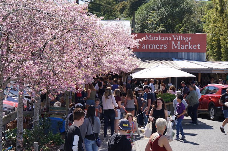 Dafür zeigte sich Matakana selbst von seiner besten Seite, da die Kirschbäume am Straßenrand gerade wunderschöne rosa blühten. Nachdem wir die Kirschblüte in Japan schon verpasst hatten, freuten wir uns umso mehr dies hier bestaunen zu dürfen.