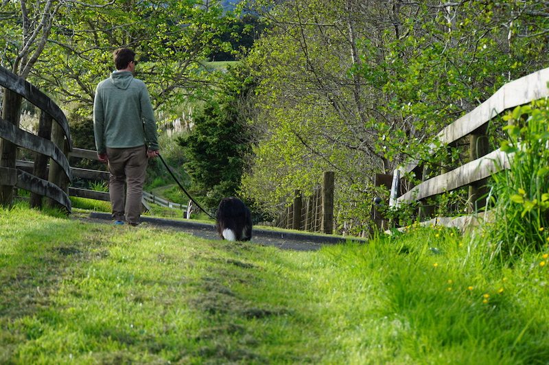 Am späten Nachmittag bogen wir in Sandspit, einem kleinen Vorort von Workworth, von der geteerten Hauptstraße in die Beachstreet ab, die aber keinen Zugang zum Strand hatte, wie das Schild neben dem Straßenschild deutlich machte. Wir folgten der Gravelroad etwa eineinhalb Kilometer, bevor wir das Anwesen von Deborah und Colin erreichten. Vor uns lagen zwei Wochen in einem Bed and Breakfast auf knapp 300 Quadratmetern Wohnflächen, eingebettet in ein idyllisches, auf einem Hügel liegenden Grundstück von knapp 8.000 Quadratmetern. Als wir durch die Einfahrt fuhren, hörten wir schon das aufgeregte Bellen von Geordie, einem zehn Jahre alten Border Collie, der der Grund für unsere Reisepause in Warkworth war. Wir hatten uns über eine Onlineplattform für einen Housesit beworben und den Zuschlag erhalten. Also hieß es nun Hund-und Hühnersitting.