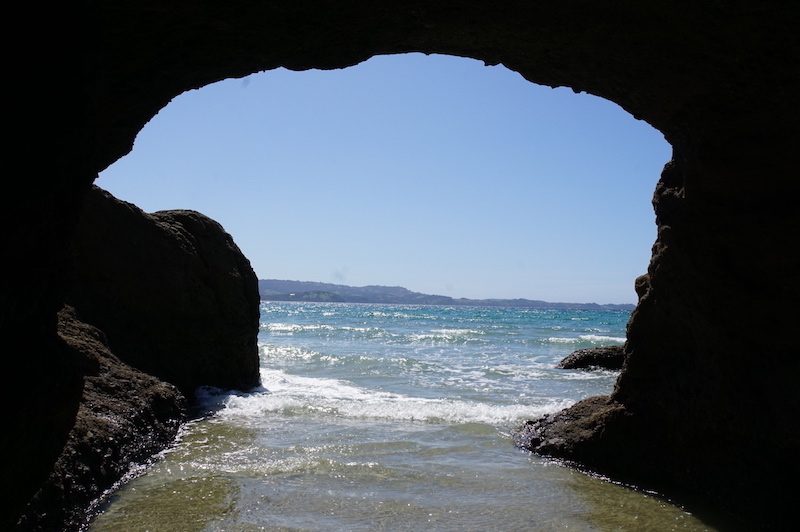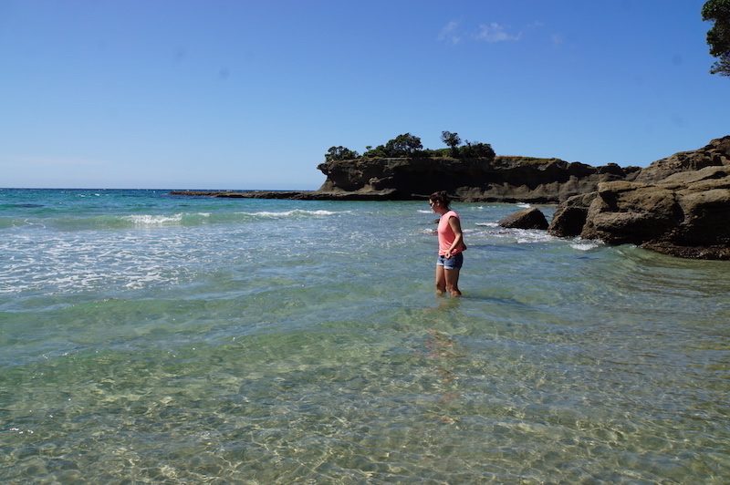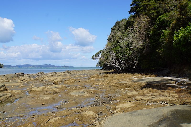 Oder entlang der Brick Bay, einem Küstenweg in Sandspit, welcher nur bei Ebbe zu begehen war und der sich durch Mangroven und über Pillowlaven schlängelte.