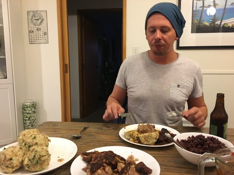 Ein weiteres Highlight für uns war auch mal wieder alte gewohnte Muster ausleben zu können. So genossen wir es eine voll ausgestattete Küche zu haben, was dazu führte, dass Steffi es sich nicht nehmen ließ, einen Schweinebraten mit Semmelknödeln und Blaukraut zu machen. Mmmh…