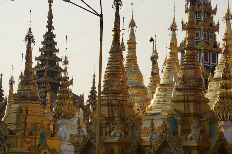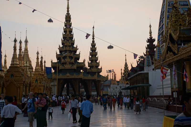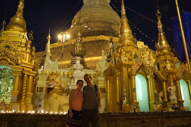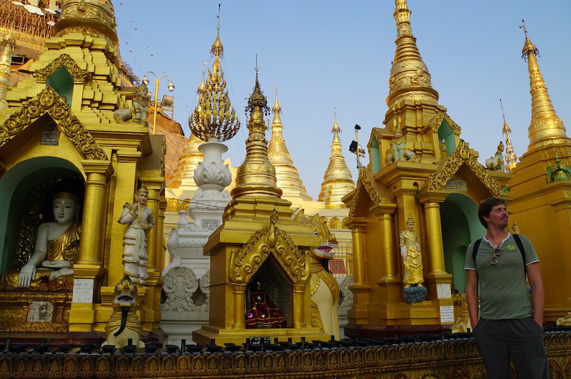 Von der Hauptstadt Vietnams aus, ging es für uns weiter in die größte Stadt Myanmars nach Yangon. Wir verbrachten einige Tage in dieser Stadt zwischen viel Müll, vielen roten Beetelnussflecken auf den Straßen und Gold an Tempeln und Pagoden wohin das Auge blickte. Ganz so gut gefiel uns die Stadt nicht und die Temperaturen waren mit knapp 40°C kaum erträglich, aber wir machten das Beste daraus und besuchten unter anderem die Shwedagon Pagode, fuhren mit dem Circletrain und schmausten bayrische Küche in einem deutschen Restaurant.