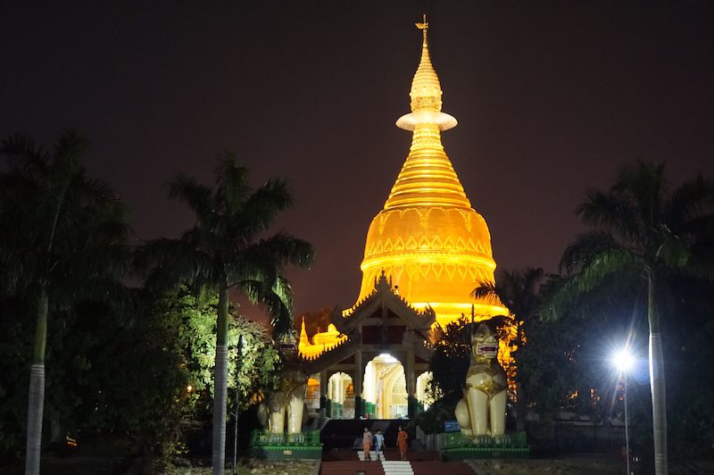 Nach dem die Sonne untergegangen war, machten wir uns langsam auf den Weg zurück zum Hostel. Auf dem Weg dorthin machten wir noch einen kurzen Halt an der Maha Wizaya Pagoda, den diese war stark beleuchtet und strahlte nur so in Gold.