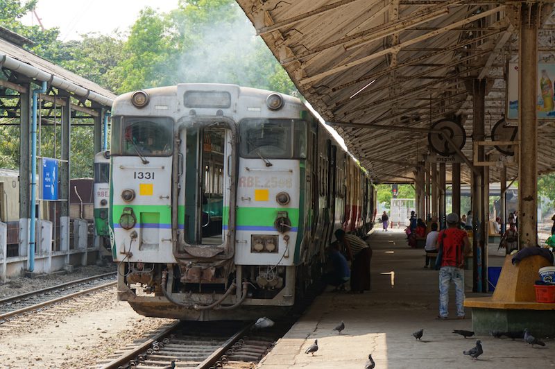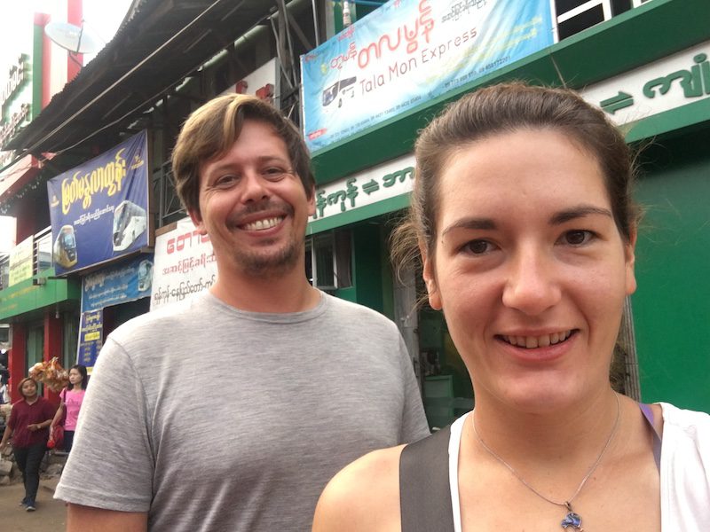 Am nächsten Tag machten wir uns auf zum Bahnhof, der nicht weit von unserer Unterkunft war. Wir beschlossen uns zuerst, um ein Busticket für den kommenden Tag zu kümmern, denn wir wollten weiter nach Hpa-An. Nach einigem Hin- und Her, kleineren Sprachbarrieren und Preisverhandlungen hatten wir auch schon zwei Tickets in der Tasche, erfuhren jedoch, dass der Bus außerhalb der Stadt losfährt.
