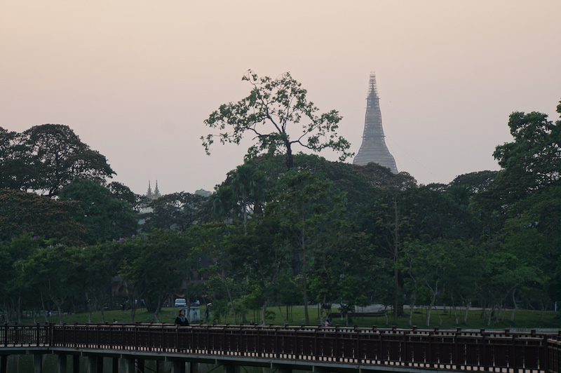 Wir schlenderten im Anschluss wieder zurück und durch den Bogyoke Park, von dem wir nochmals einen wirklich schönen Blick auf die Shwedagon Pagode hatten. Dort saßen wir einige Zeit bis wir beschlossen uns in ein Restaurant aufzumachen.